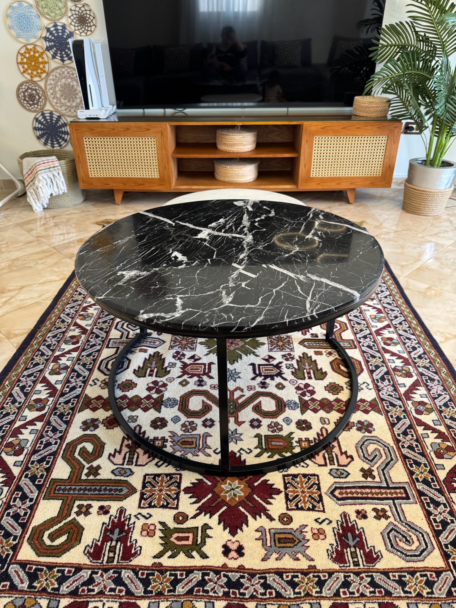 Table 1: Round Spanish black marble top, 80 cm in diameter – Qty: 1